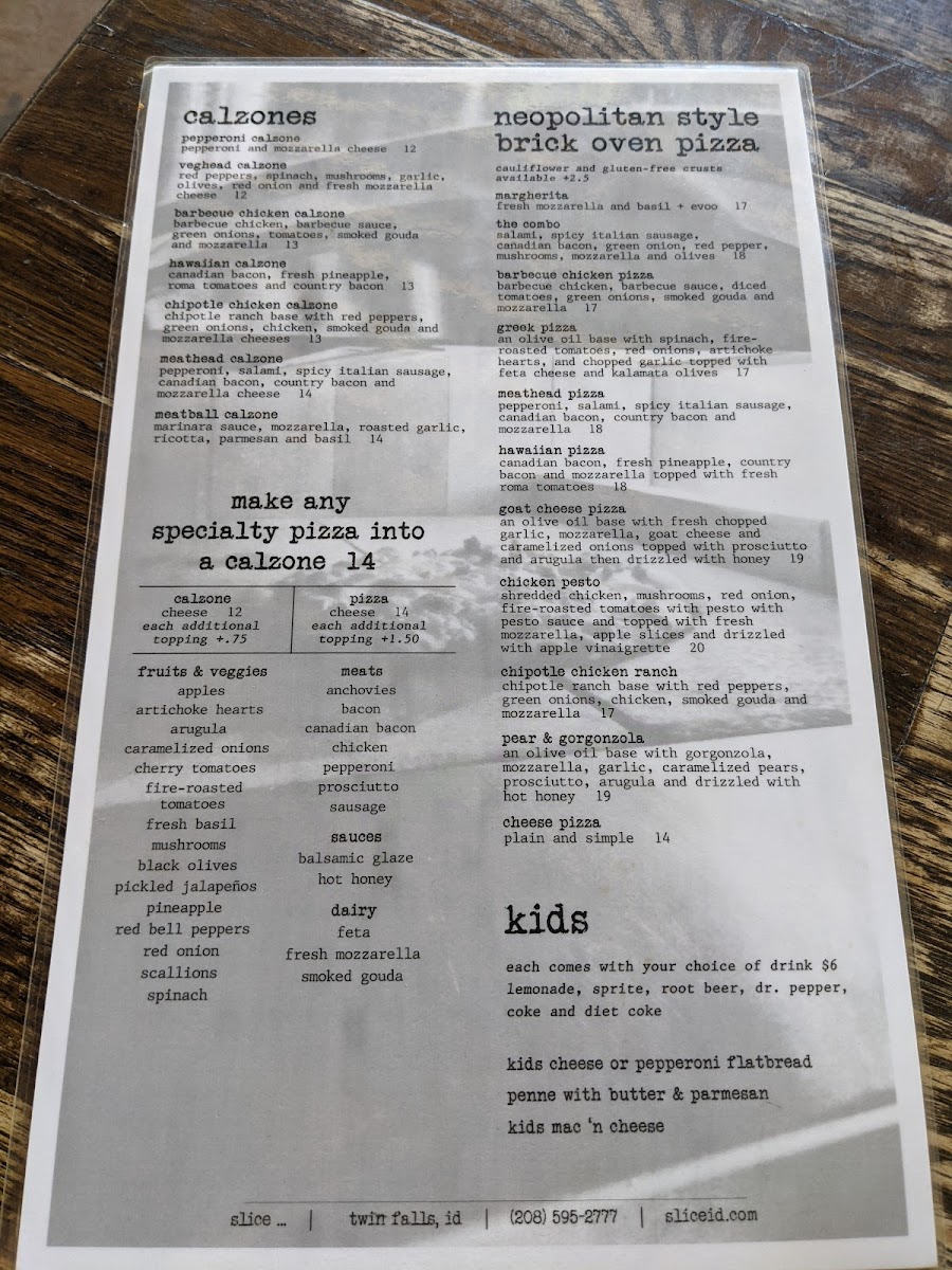 Welcome to Slice, where culinary excellence meets a cozy atmosphere right in the heart of Twin Falls, ID. Located at 132 Main Ave N, this pizzeria specializes in Neapolitan-style brick oven pizzas that will tantalize your taste buds. Highlighted by rave reviews, the Pear & Gorgonzola Pizza stands out with its unique blend of caramelized pears, thin-sliced prosciutto, and arugula, drizzled with sweet honey, offering a delightful balance of flavors.